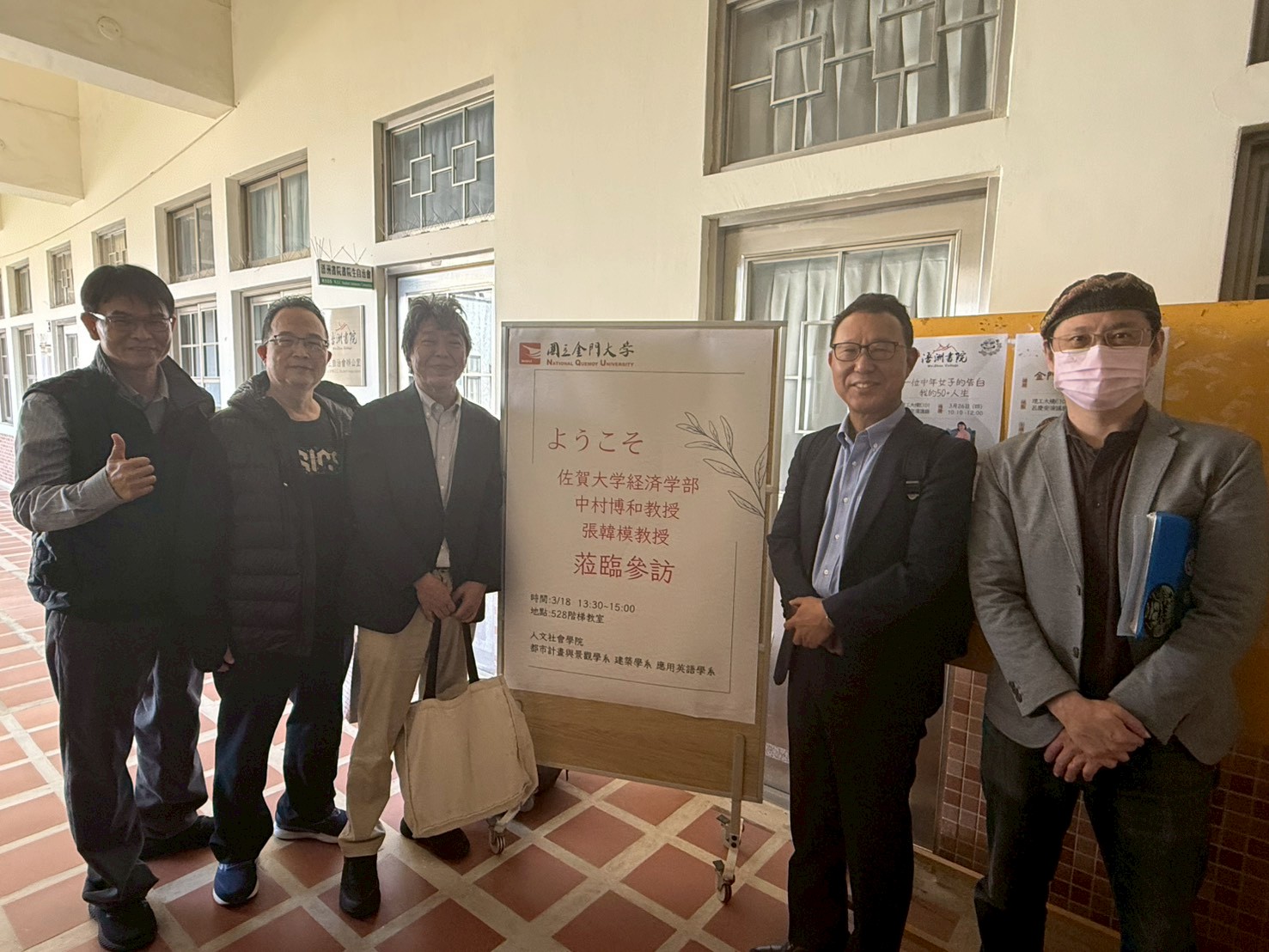圖:歡迎兩位佐賀大學老師蒞臨金門大學參訪(左起 謝琦強教授、張旭福主任、中村博和教授、張韓模教授、黃信穎教授)