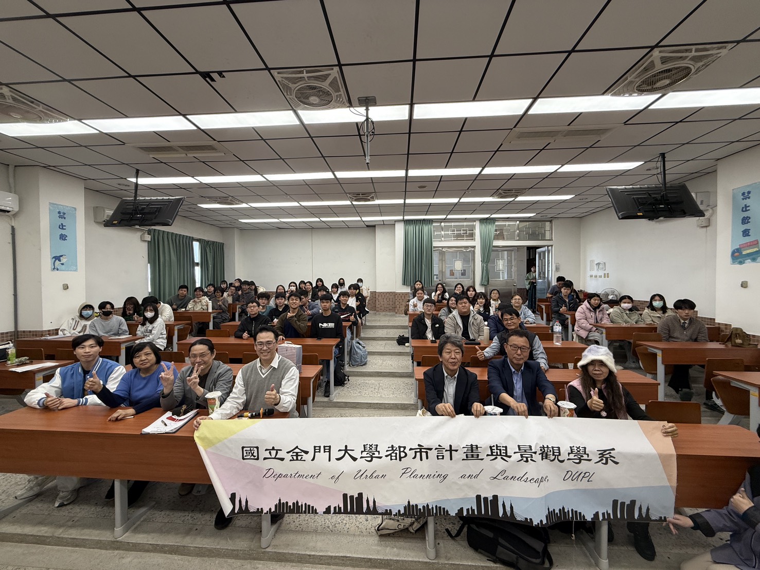 在緊湊時間的交流過程,佐賀大學經濟學部的中村博和教授發表了題為「人口減少背景下日本地方的挑戰」之專題分享。中村教授深入剖析了日本當前所面臨的少子高齡化現象,以及資源過度集中於東京等大都會區所導致的「地方消滅」危機。他透過豐富的數據與佐賀縣當地的實證案例,探討了地方政府與學術機構如何透過經濟政策、產業活化、以及吸引「關係人口」等策略來振興地方經濟,並強調跨領域合作在解決地方衰退問題上的必要性。針對佐賀大學中村博和、張韓模教授的精彩分享,金門大學亦展現了在空間環境與城鄉規劃上的堅強學術實力,由該學院都市計畫與景觀學系、建築學系、應用英語學系的師生共同進行對話。