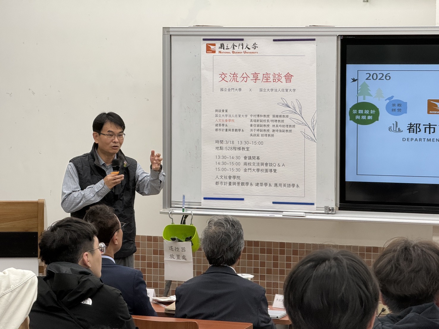 圖:都市計畫與景觀學系謝琦強教授介紹金門大學及本系整合發展方向